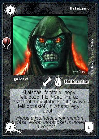 Kiadás: Alappakli, 5. kiadás (Ősök városa), Alappakli, 6. kiadás (Ősök Városa), Alappakli, 7. kiadás (Ősök Városa) Gyakoriság: gyakori Lapszín (isten): Halhatatlan Klán Típus: galetki Szöveg: Kijátszási feltétele, hogy feláldozd 1 ÉP-det. Ha az asztalról a gyűjtőbe kerül (kivéve feláldozástól), húzhatsz egy lapot. Szinesítő szöveg: "Hiába a Halhatatlanok minden tudása, előbb-utóbb őket is utoléri a végzet..." Illusztráció: Szász Gábor